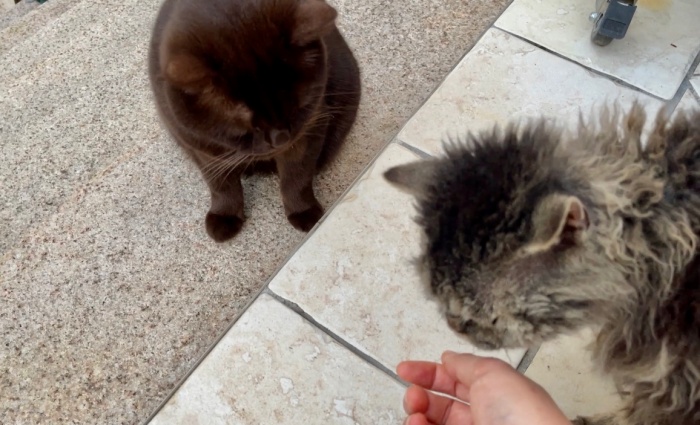 급기야 이스탄불이 소심한 목소리로 야옹... 했는데 틱스가 그런 이스탄불을 무섭게 노려보며 하악질을 해대기 시작했다!