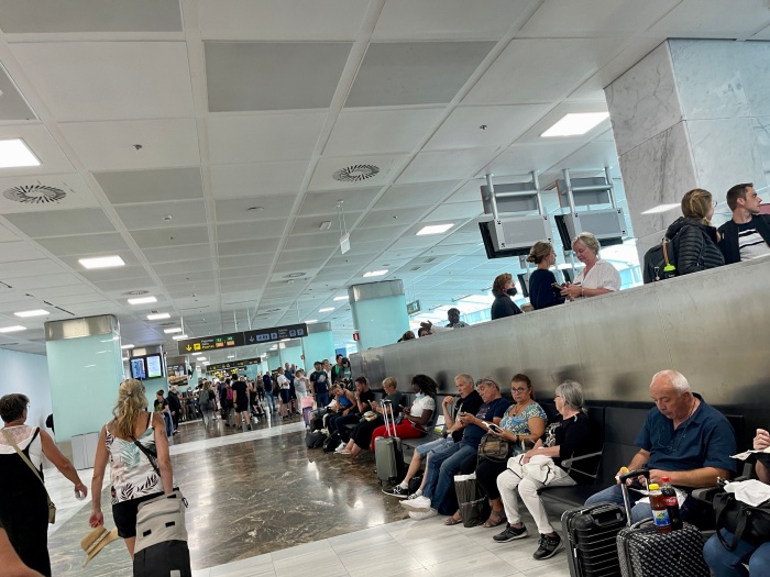 어마어마한 관광객들로 작은 공항이 터져나가고 있었던 것이다. 에어컨은 느껴지지 않았고 땀이 줄줄 나는데 마스크는 벗을수가 없었다. 간신히 까페에서 테이블을 구해 요기를 하며 쉴 수 있었지만 비행기는 연착돼서 게이트앞에 한시간 가량 서 있어야만 했다.