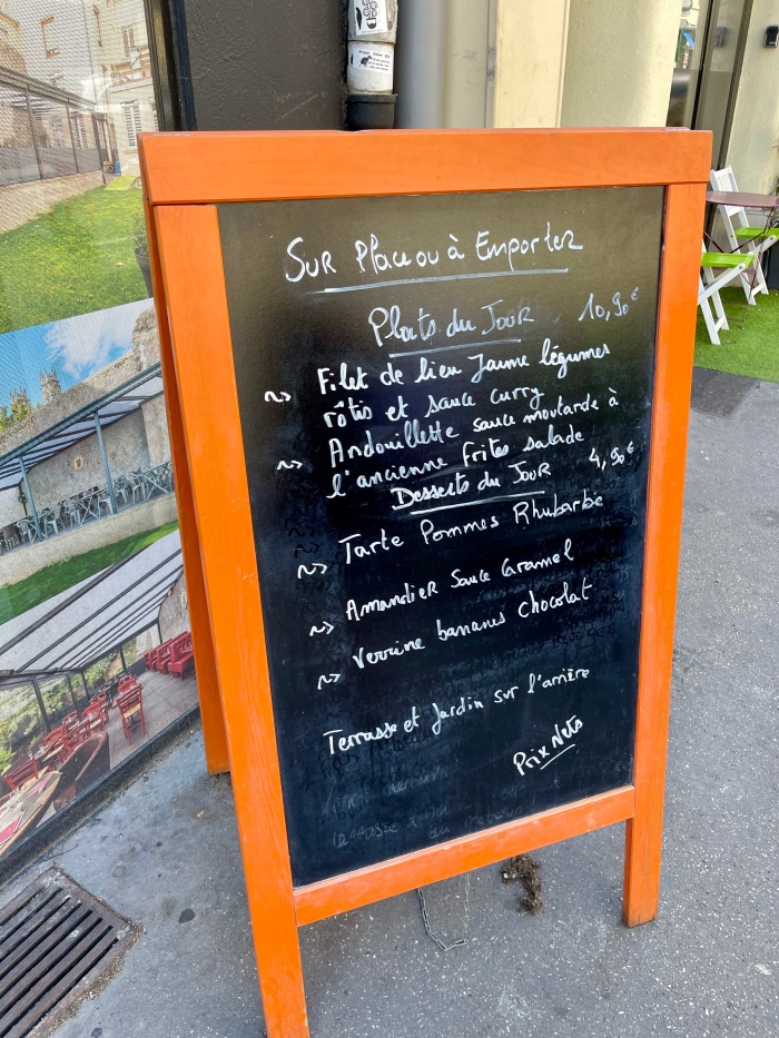오늘의 요리, 쁠라뒤쥬가 두가지였는데 우리는 그 중 흰살생선을 주문했다.