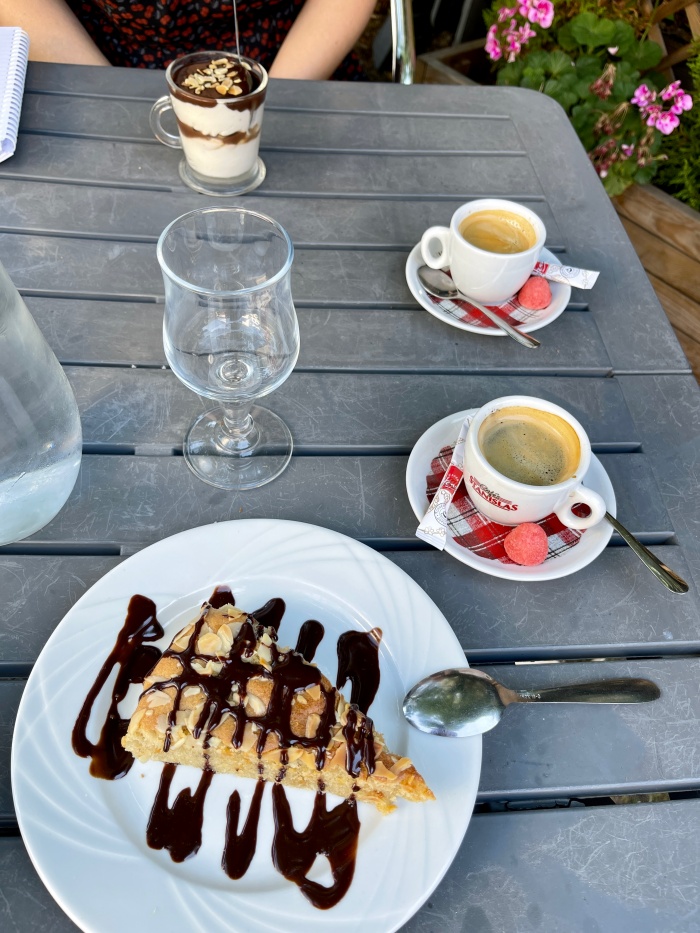 후식으로 커피와 함께 아몬드갸또를 주문했다. 카린은 초콜렛 무스같이 생긴걸로-
