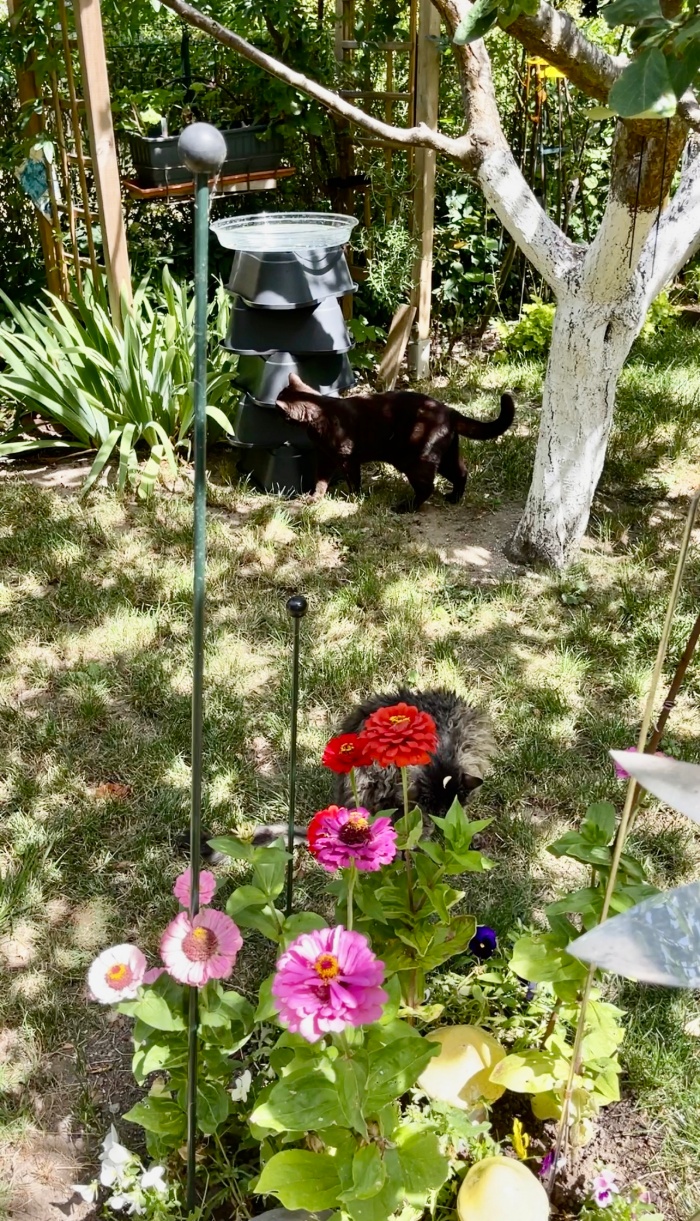 시아버지께서 새로운 꽃들을 심으셨는데 고양이들이야말로 이 예쁜 정원의 주인들이다.