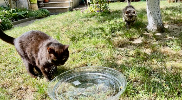 그 물 정말 새들을 위한게 맞지요...? 고양이들이 더 신난것 같은데요...