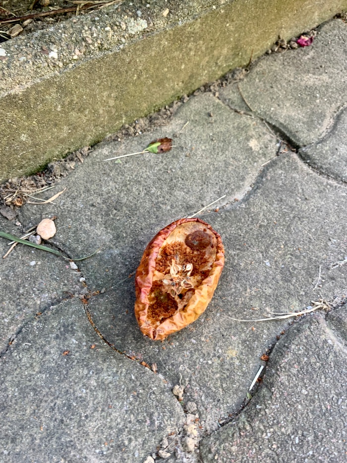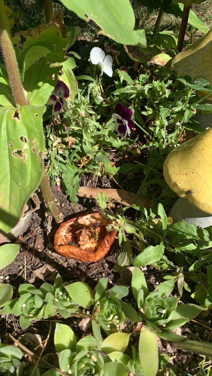 시어머니께서는 이따금씩 사과도 반쪽씩 잘라서 정원 곳곳에 뿌리신다.