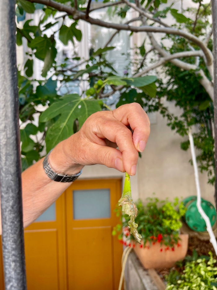 "아침에보니 무화과가 딱 두개 예쁘게 익었더라구. 하나 따서 미슈랑 둘이 나눠 먹었구, 하나는 너 먹으라고 남겨뒀단다!"