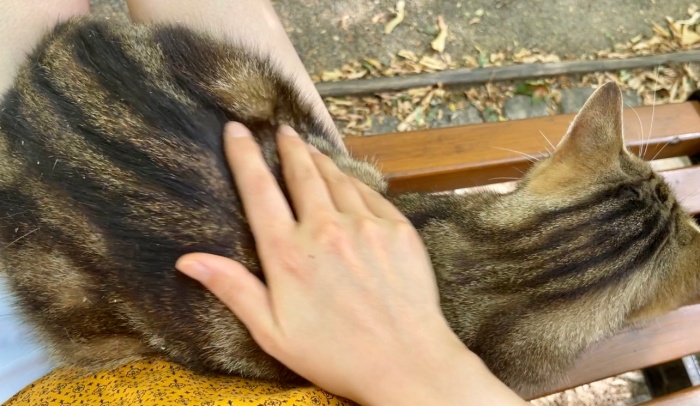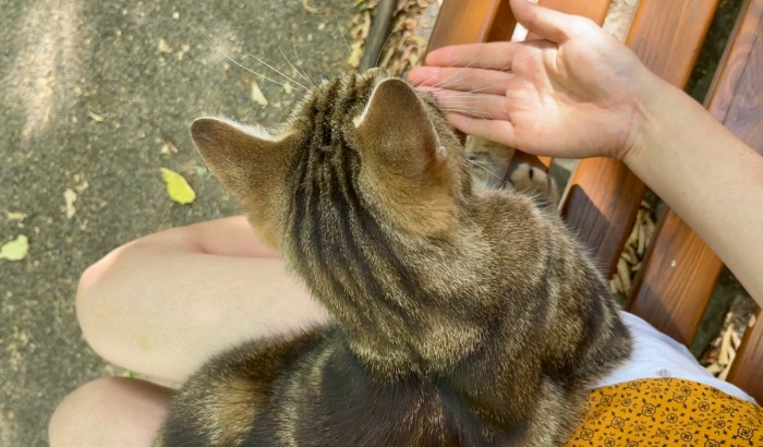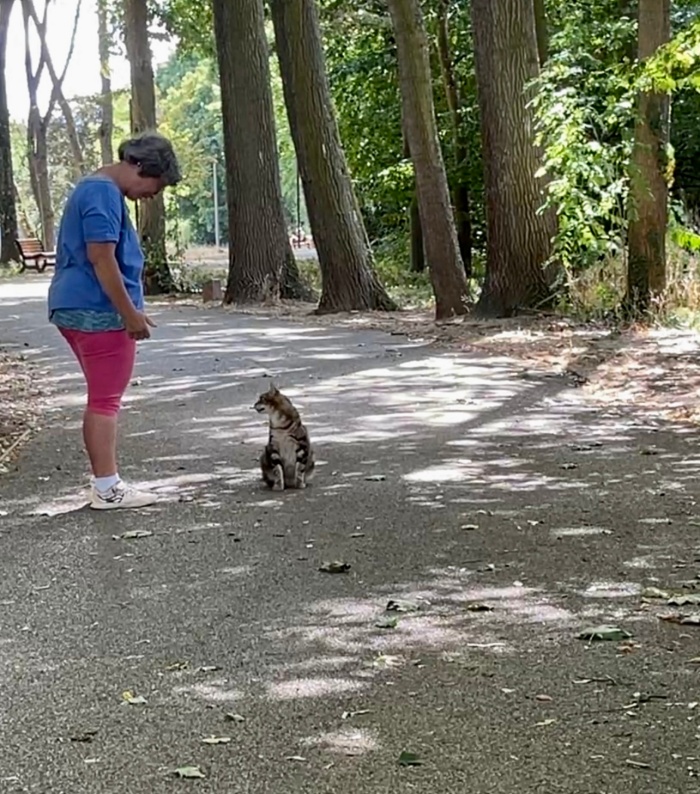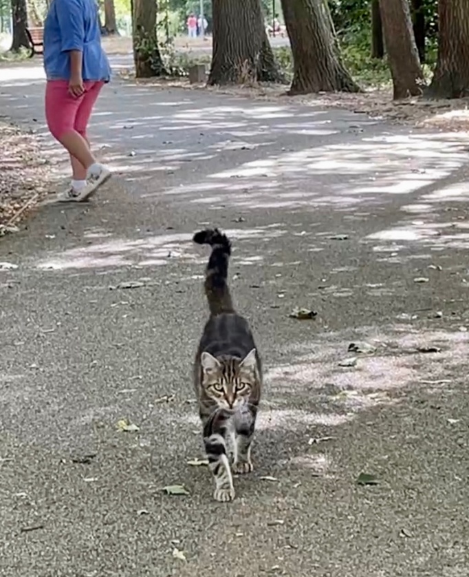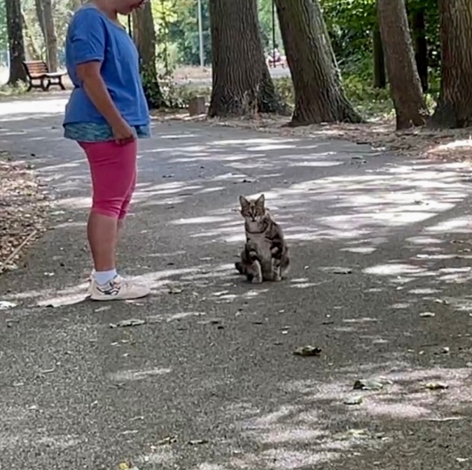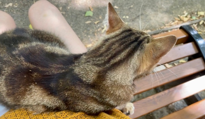 잠시후 고양이는 새를 쫒으러 달려나갔고, 근처에 있던 소녀의 눈에 발각(?)되었다.