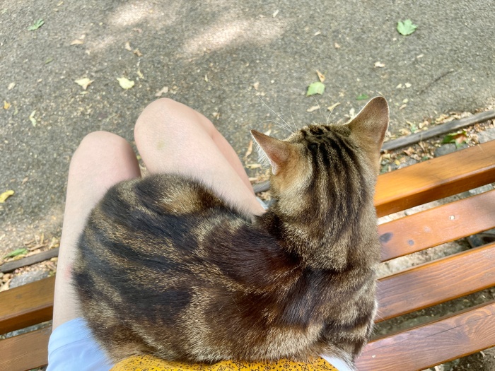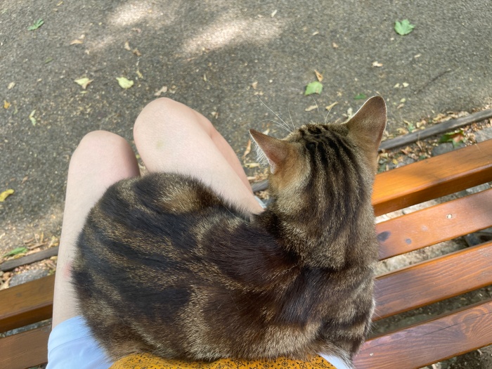 골골거리면서 배의 온기를 내 다리로 전해주는데 세상 기분이 좋아졌다. 사진 찍어서 자서방과 친구들에게 막 자랑했다. 공원에서 새로 사귄친구라며 ㅎㅎ