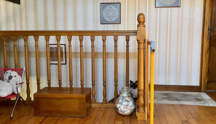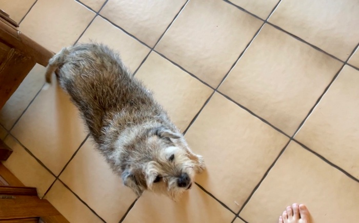 카린 고향집에는 아버님과 고모님 외에도 노견 리넷과 고양이 사이토가 함께 살고 있다.