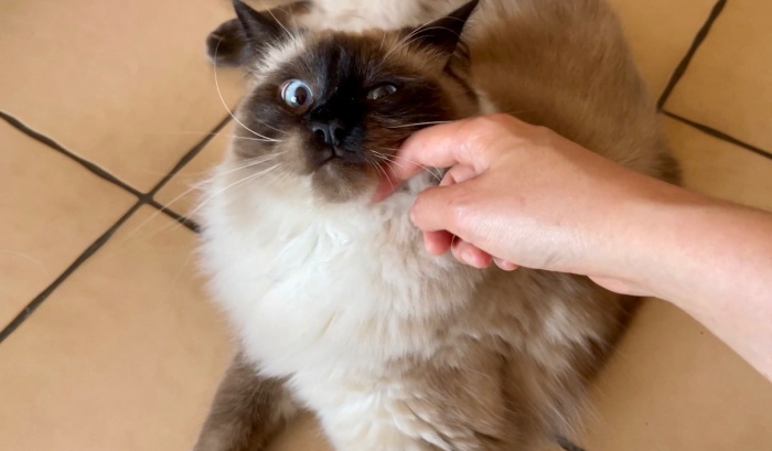 내가 볼을 쭈물딱거려도 딱히 화내지는 않는다. 표정은 별로 밝진 않지만...