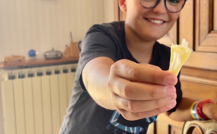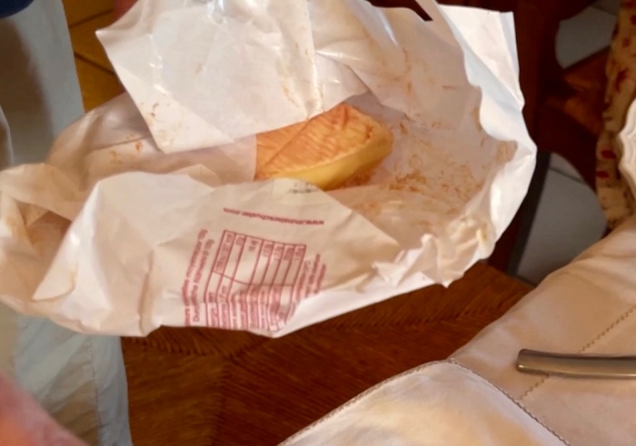 "오래되면 이렇게 치즈가 흘러내리기 시작해. 옛날 사람들은 이렇게 부드럽게 변한 치즈를 바게트에 발라먹는걸 좋아했어. 그럼 바게트 사이사이마다 치즈가 가득 메워져서 진하게 발라먹을수 있거든."
