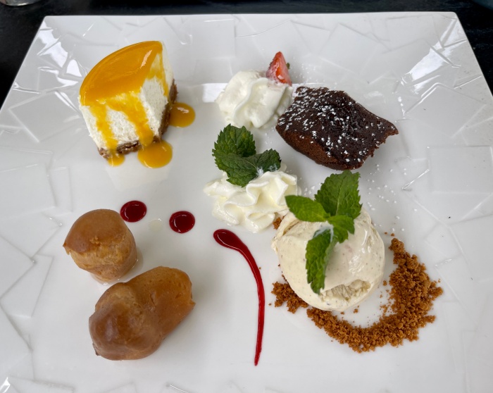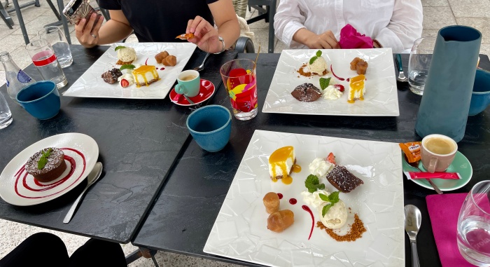 그리고 후식으로는 café gourmand을 디카페인으로 주문했는데, 아이스크림, 레몬치즈케잌, 초코케잌 그리고 럼에 절여진 갸또가 푸짐하고 예쁘게 나왔다. 다들 대만족!