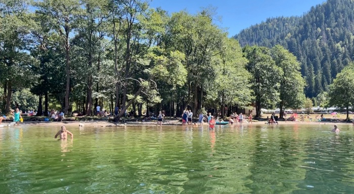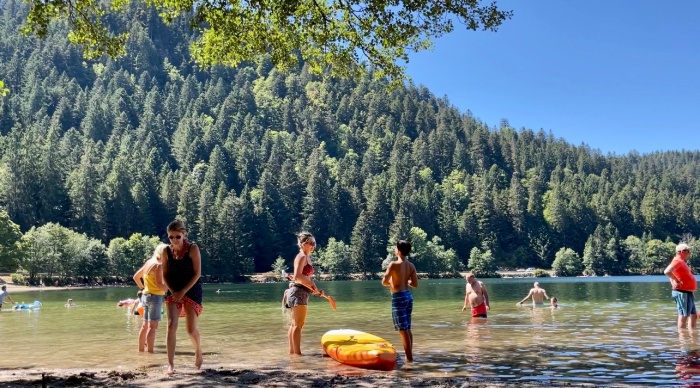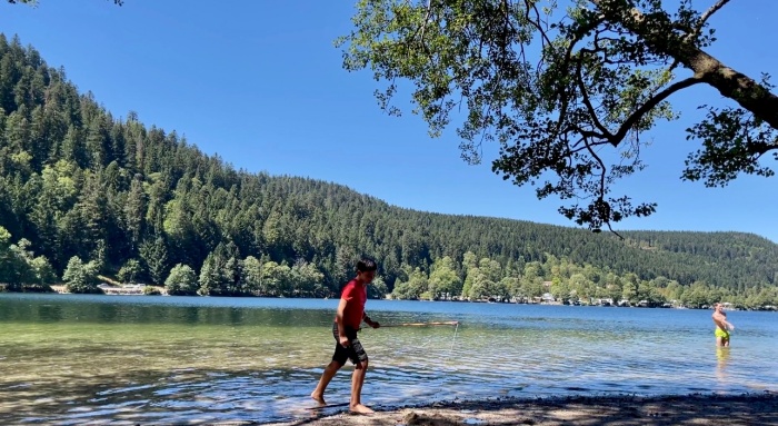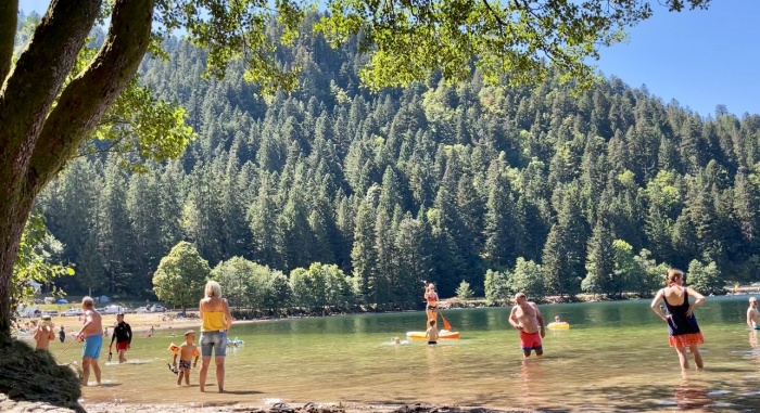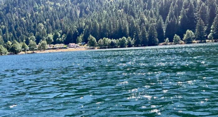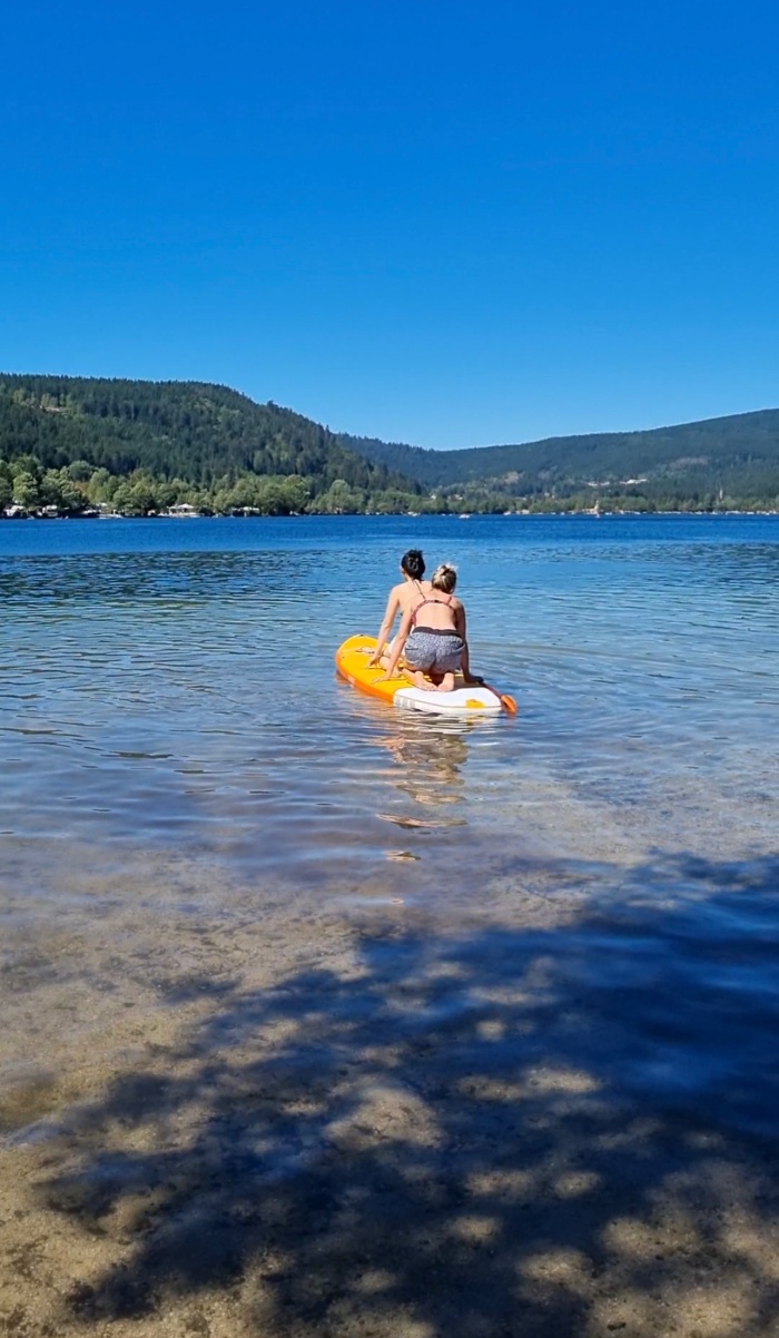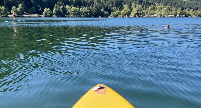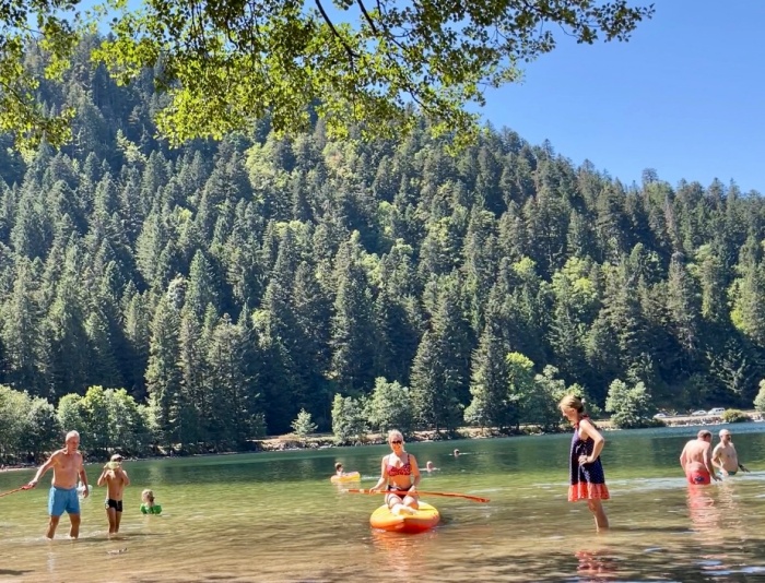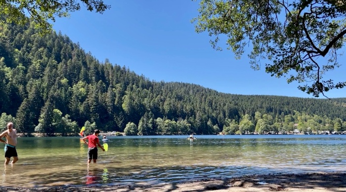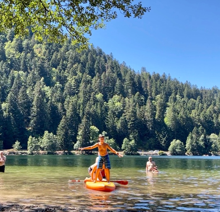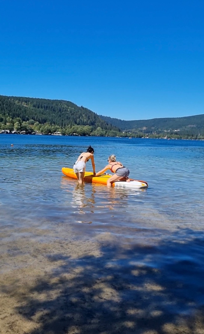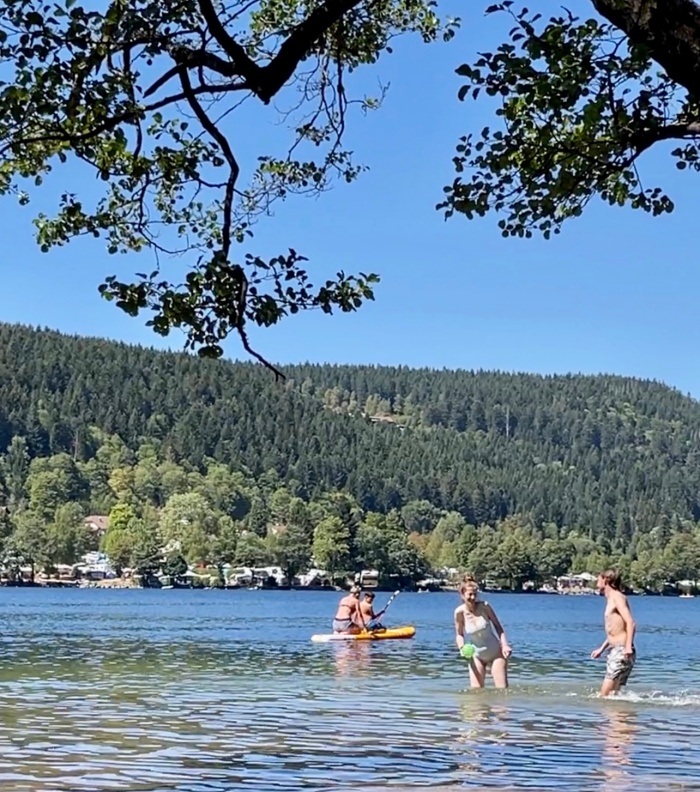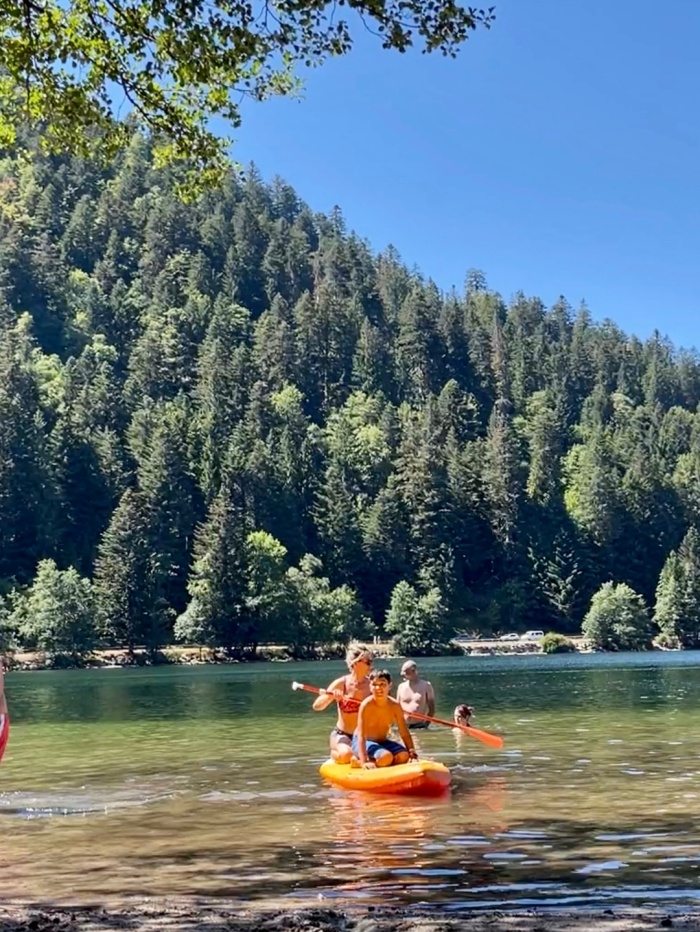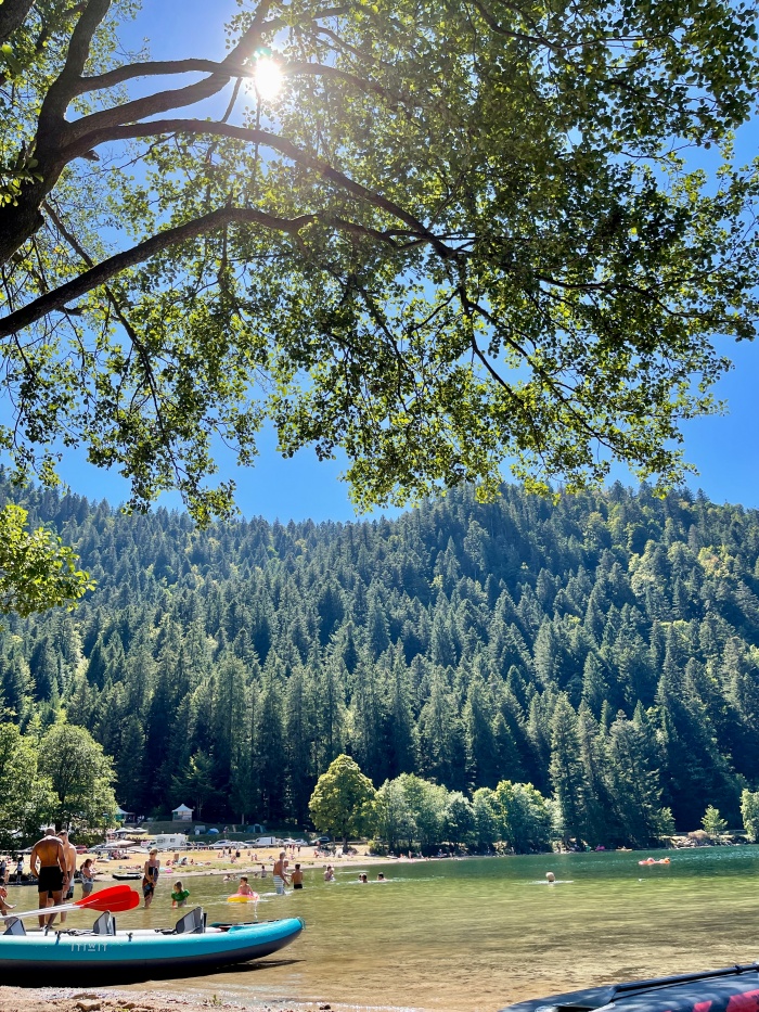 호수 한가운데에서 바라보는 해변과 (친구들은 호숫가를 해변: plage라고 불렀다.) 푸른 산의 모습 그리고 햇살에 반짝이는 물결이 너무너무 아름다웠다.