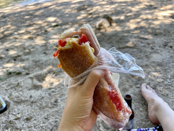 그리고 아침에 준비했던 샌드위치를 먹었다. 왜이리 맛있는지.. 속은 정말 알차게 채웠다. 토마토 버터 꼬니숑 정봉...