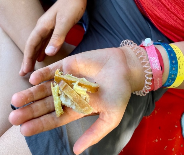 가브리엘은 낚시를 하러 간다며 미끼로 쓸 빵을 달라길래 내가 먹던 샌드위치의 끄트머리부분을 잘라서 주었다.