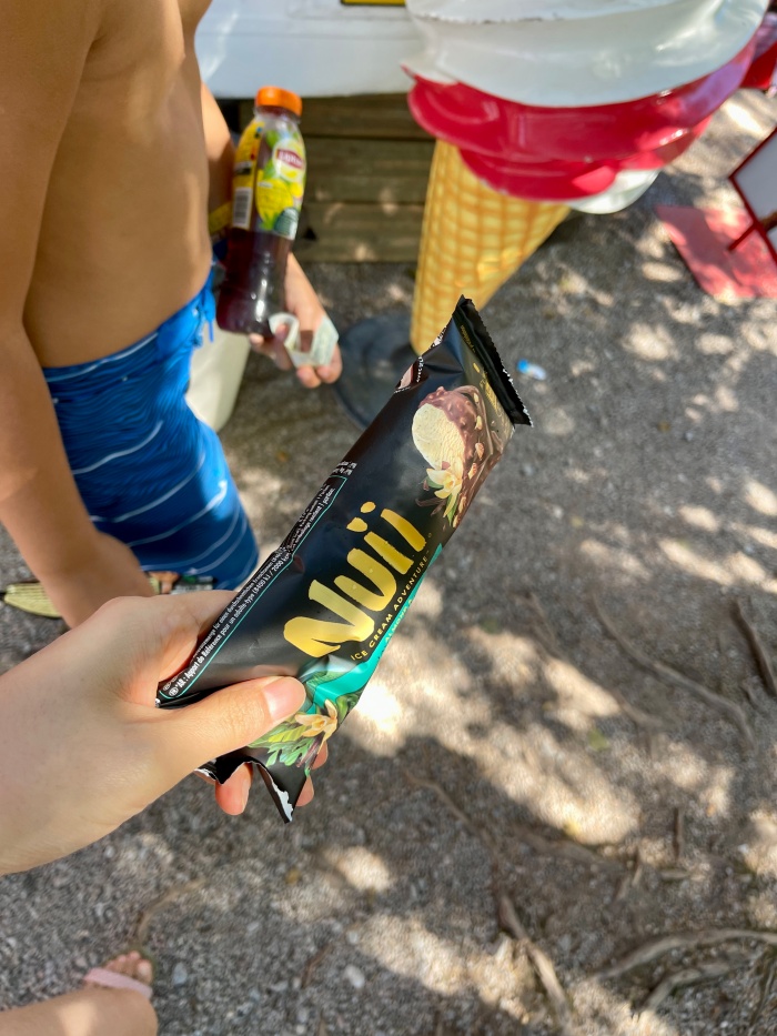 우리는 가게에 도착했고, 아이스크림 하나씩을 골랐다. 그런후 가브리엘은 음료수를 하나 골랐는데 내가 감자칩도 먹으라고 권했더니 그건 싫다고 했다. 카린과 마갈리는 군것질을 거절했으므로 (나는 이해가 잘 안되지만) 아이스크림은 나랑 가브리엘꺼만 샀다.