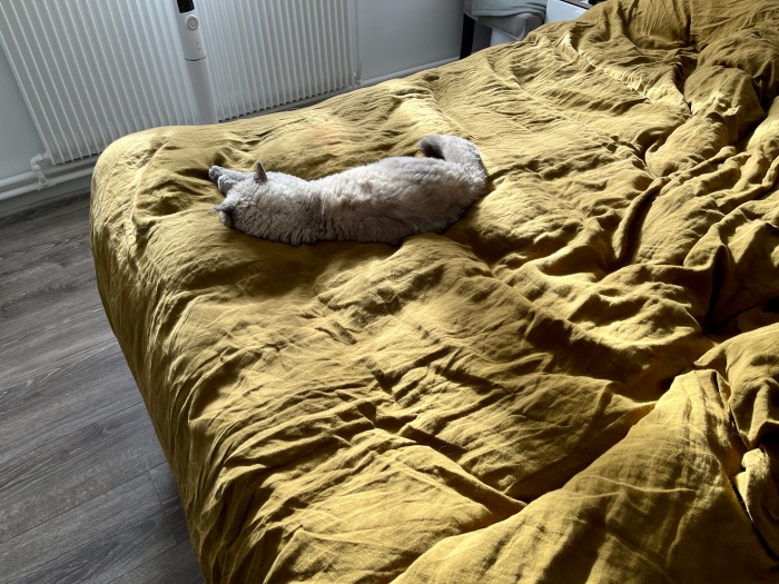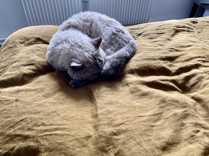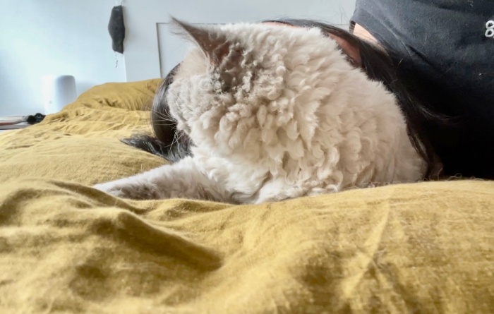 나는 무스카델이 침대에 누워있는 걸 볼때마다 저 폭신한 털에 머리를 파묻고싶어진다.