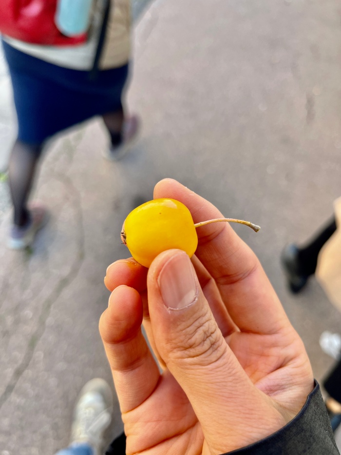 구내식당으로 걸어가는길에 발견한 노란 열매를 카자흐스탄 친구가 아무렇지 않게 서너개 따서 먹으러 걷길래 ㅋㅋㅋ 시리아 친구와 나도 따라서 몇개 따다가 쓱쓱 문질러서 맛을 보았다.