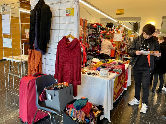 이런 작은 부스들이 80개 정도 2층까지 펼쳐져있는데 모두 수공예품이고 가격 거품에 대해서는 전혀 걱정할 필요가 없다고 한다. 나는 페루 아이들을 돕는 이 부스에서 크리스마스 선물로 사용할 아동용 예쁜 털모자를 2개 샀다. 각 8유로였다.