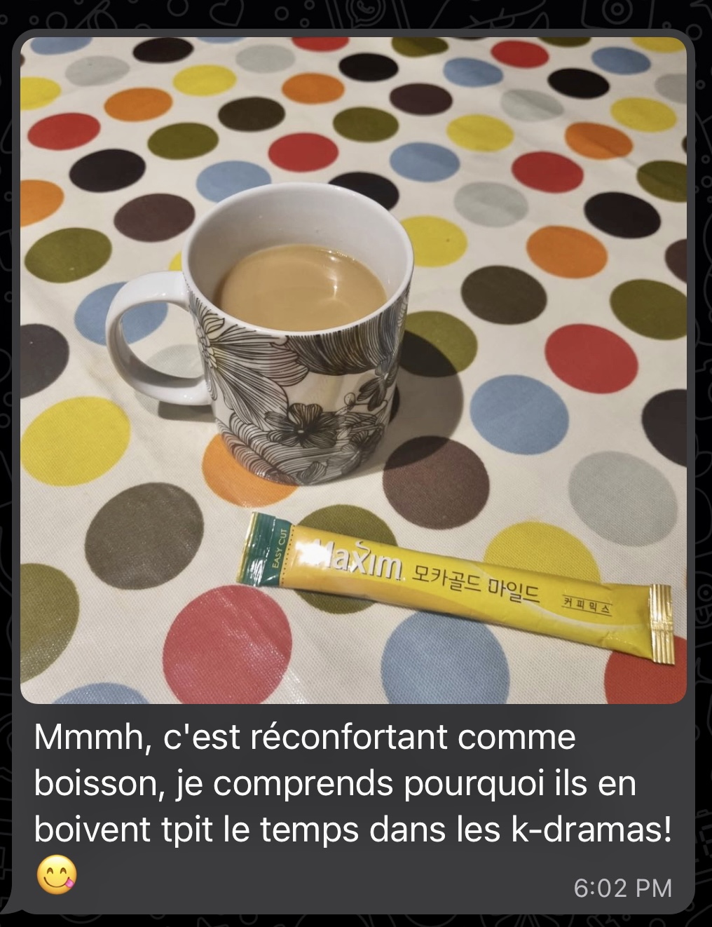 한국 드라마를 즐겨보는 또다른 친구도 똑같이 말했는데 과연 맛도 좋아할까 조금 걱정되기도 했다. (에스프레소만 마시는 자서방은 커피믹스라는 단어만 들어도 몸서리를 친다 ㅡㅡ;)