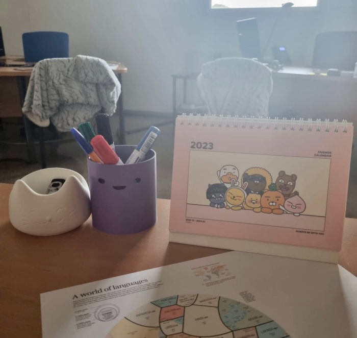 책상위에 있는 탁상 달력과 함께, k믹스커피의 맛도 칭찬했다.