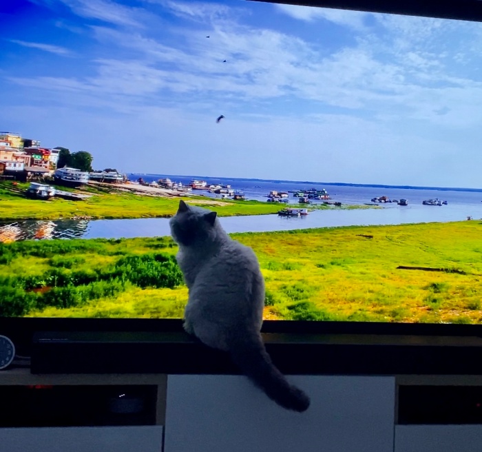 아... 새를 보면 못참는 무스카델. 스크린 앞에 웅크리고 앉아서 열심히 새를 따라 고개를 움직인다. (새말고 물고기도 좋아한다.ㅋ)