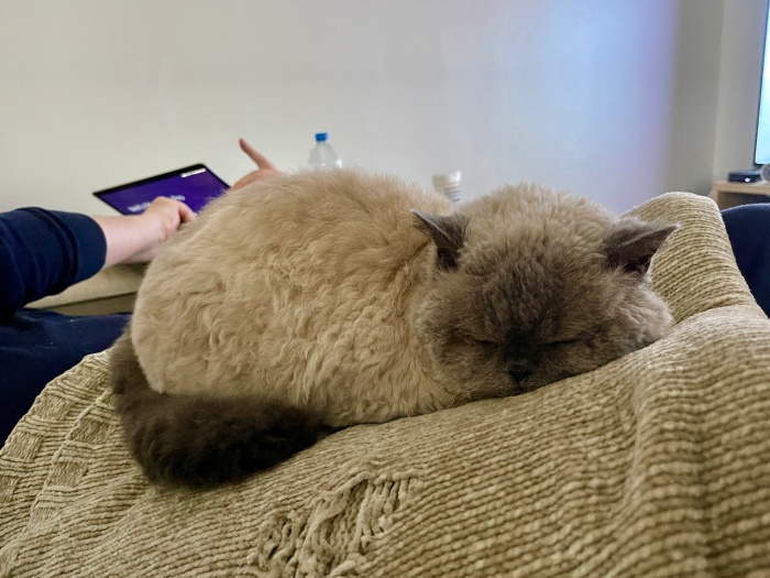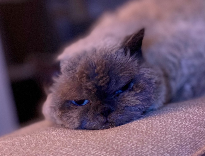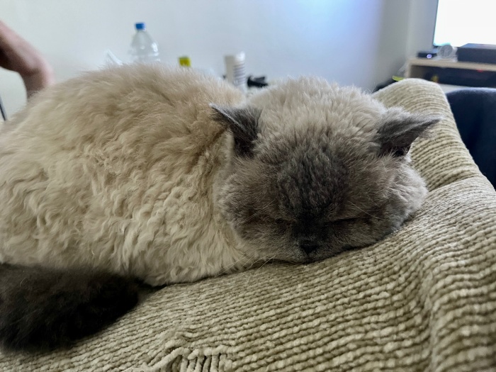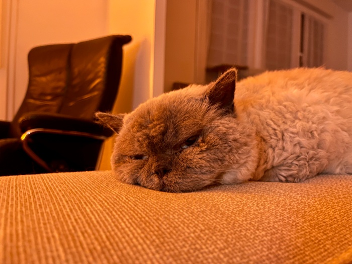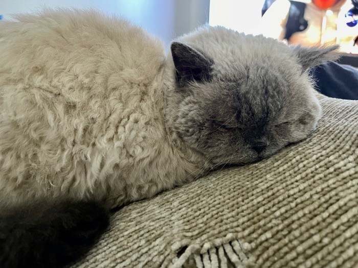 겨울을 맞아 털찐 우리 무스카델. 동그래진 얼굴은 잘때도 귀엽다.