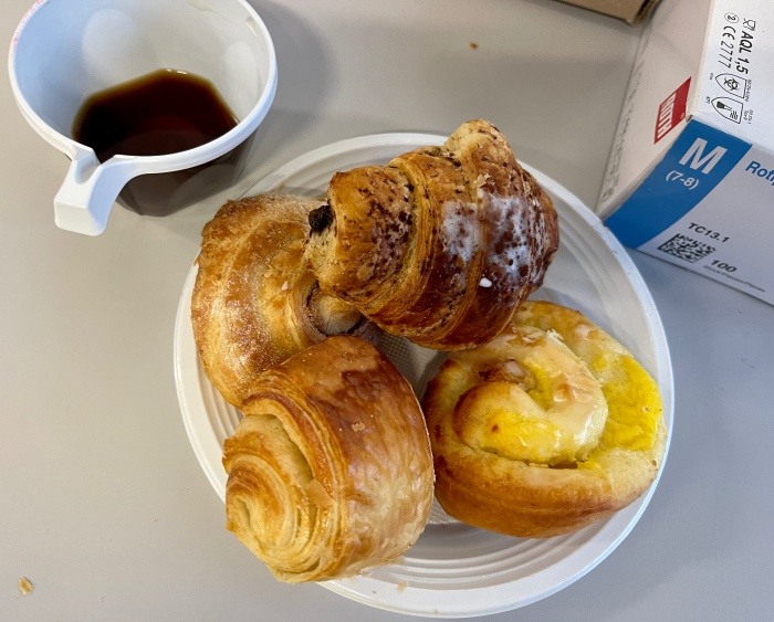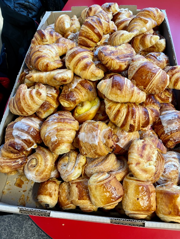 행사장에 들어서자마자 여기저기 아는 얼굴들이 다가와서 나에게 인사를 건넸지만 나는 일단 빵 상자만 보고 직진-