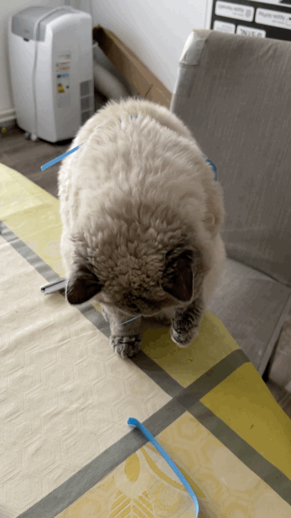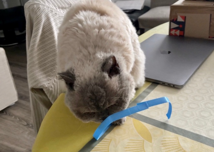 다른 고양이들은 상자를 그렇게 좋아한다던데 우리 무스카델은 상자보다 포장끈을 그렇게나 좋아한다.