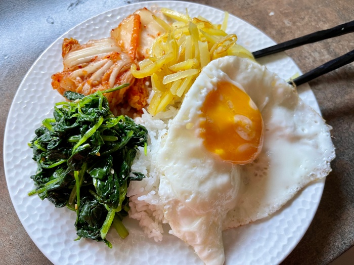 감자볶음이랑 김치만 있어도 나는 밥 두공기를 뚝딱 먹을수 있다. 거기에 계란 후라이랑 시금치까지 있으니 나에게는 진수성찬이다.