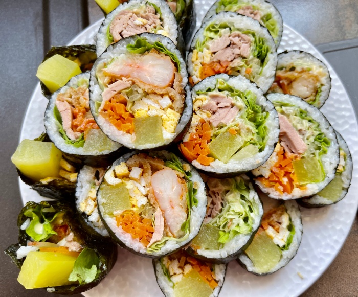 새우튀김 프로모션이 있길래 사왔다가 참치랑 마요네즈넣고 김밥을 만들었는데 이것도 참 맛있었다. 김밥은 언제나 옳다.
