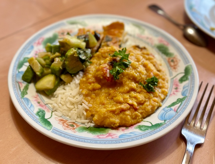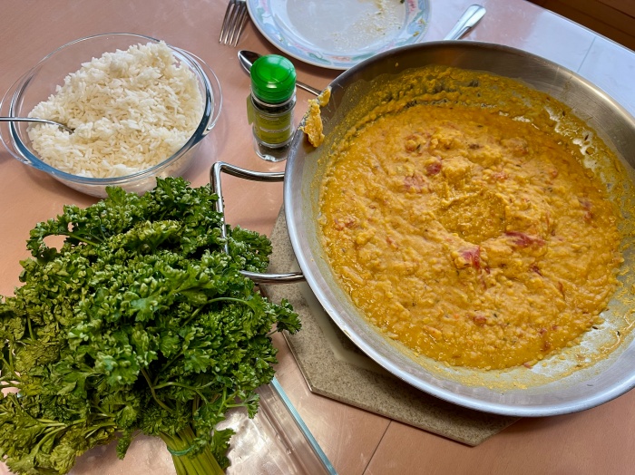 내가 가져온 키슈 반조각과 샐러드로 엉트레를 맛나게 먹고나서 렌틸 커리를 먹었다.