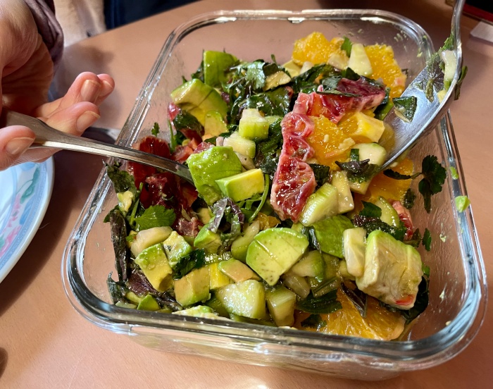 카린은 자몽과 오렌지, 아보카도 그리고 깻잎!을 넣은 동남아식 샐러드를 만들어왔는데 너무너무 맛있었다. 참기름과 깻잎이 들어가서 한식을 먹고 있나 싶은 착각이 들 정도였다.