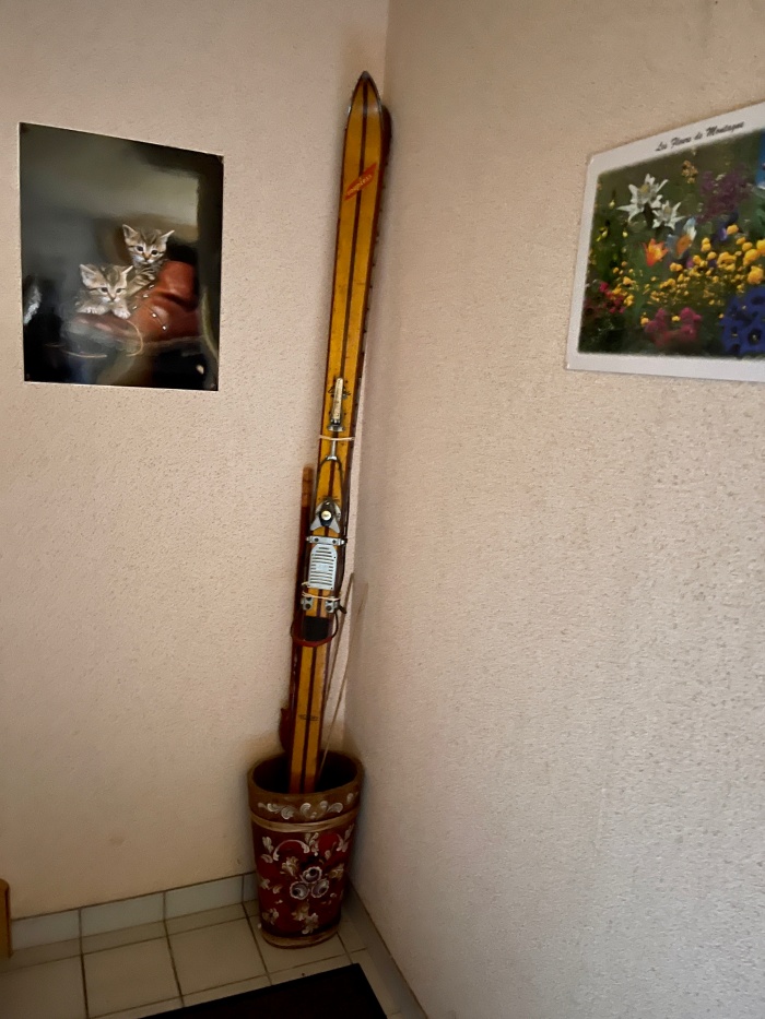 산장에 들어서자마자 보이는, 당당하게 서있는 낡은 스키가 괜히 멋지다.
