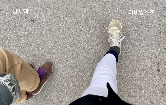 간단한 산책이라길래 그냥 흰바지에 키높이 운동화 (시어머니께서 물려주신건데 이렇게 애착신발이 되었다)를 대충 신고 나왔는데 프랑스친구들은 등산복장으로 무장하고 나오길래 우리는 잠깐 당황했다. 나는 나름 구색을 맞춘다고 두꺼운 양말을 바지 위로 끌어올리고 당당히 걸음. 나는야 패셔니스타ㅋ