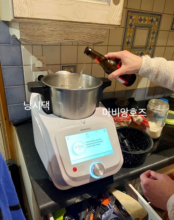 써머믹스와 비슷하게 생긴 이 머신의 이름은 무슈퀴진 (Monsieur Cuisine)이다. 해석하면 주방아저씨쯤 되려나...? 저렴이 마트 리들에서 제작된건데 보급형 써머믹스같은 느낌이었다.