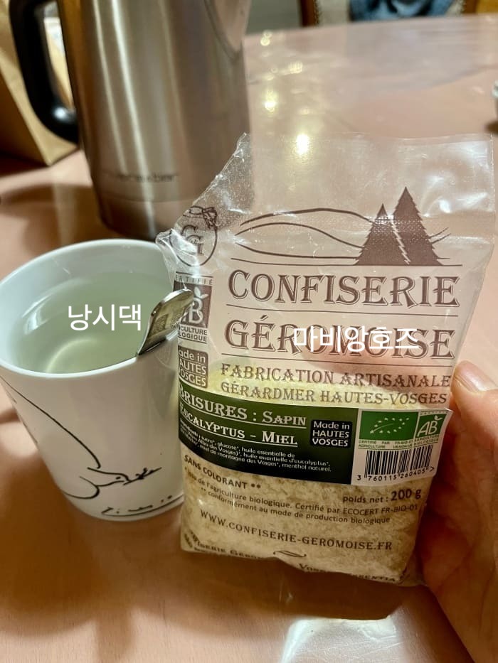 마갈리는 우리에게 맛을 보여주겠다며 뜨거운물에 보쥬 봉봉가루를 한스푼 타서 주었다.