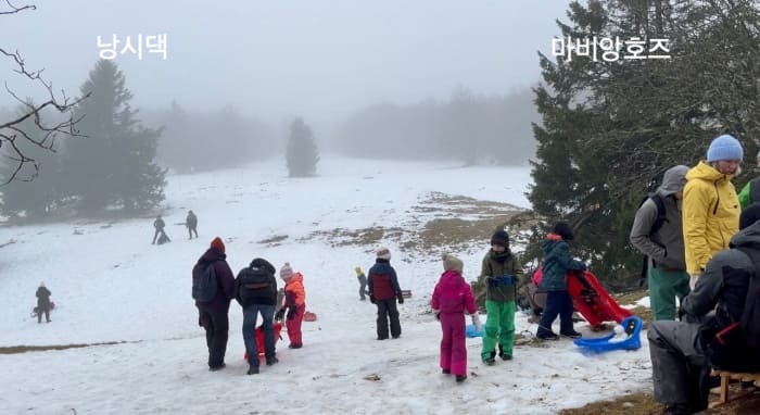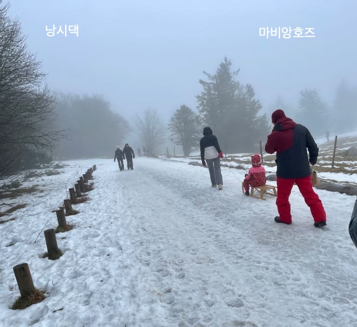 여기저기 신나게 눈썰매를 타는 아이들의 웃음소리마저 살짝 몽환적으로 느껴졌다.
