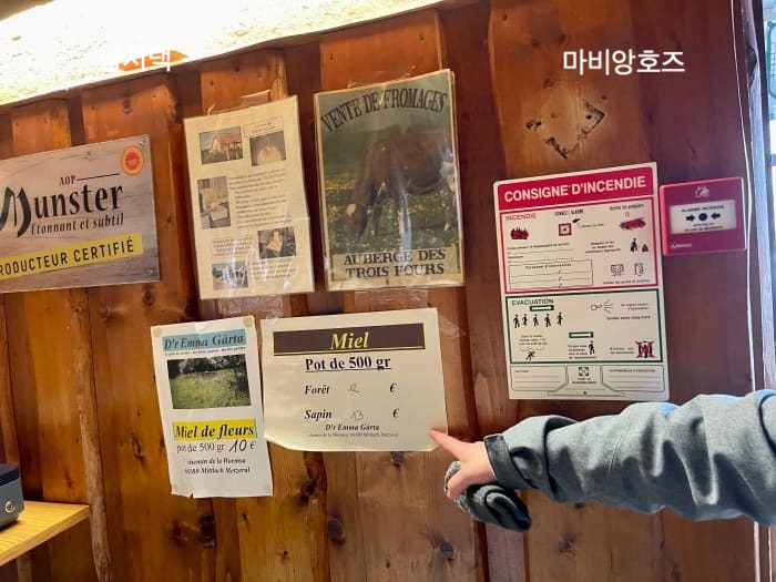 이 레스토랑에서는 치즈뿐 아니라 보쥬 꿀도 판매하고 있었는데 시내보다 훨씬 저렴했다!! 여기서 살 껄...