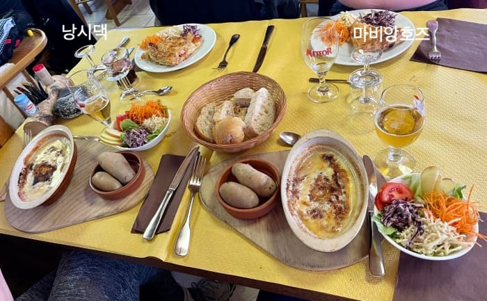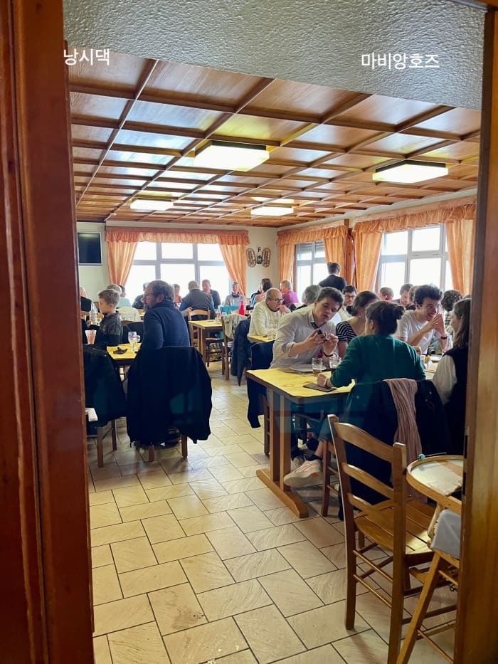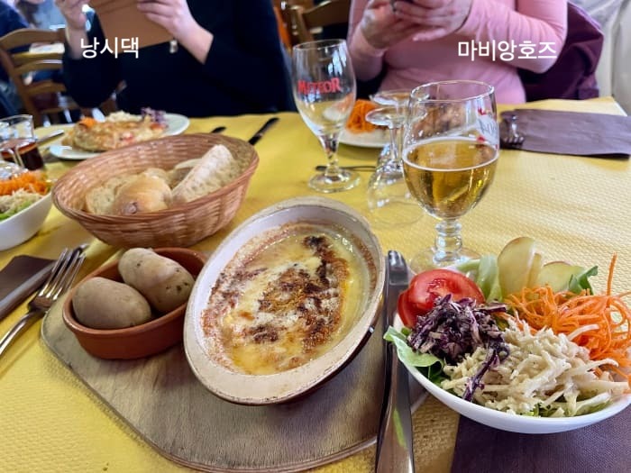 나와 마갈리는 이집의 간판 메뉴이자 이 지역의 특산물인 멍스테르 치즈를 주문했다. 일전에 가브리엘이 워낙 맛있게 먹길래 먹어보고 싶었던 것이다. 카린과 쏨은 치즈 뚜흐뜨(tourte)를 주문했다.