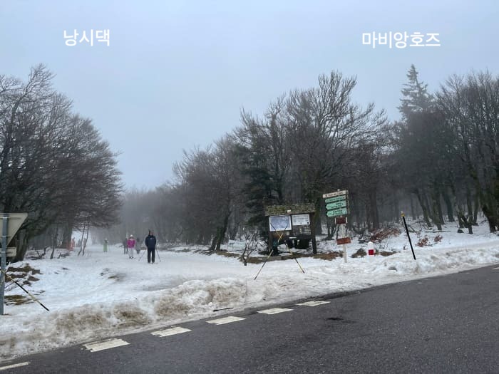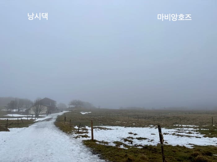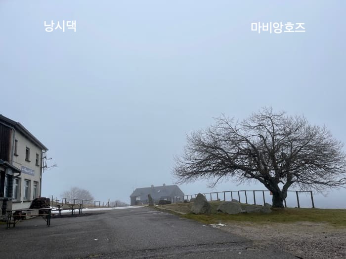 저 멀리 안개속에서 레스토랑이 모습을 드러냈다. 맑은 날이라면 저 멀리 알자스 마을까지 보였을텐데 그건 좀 아쉽다.