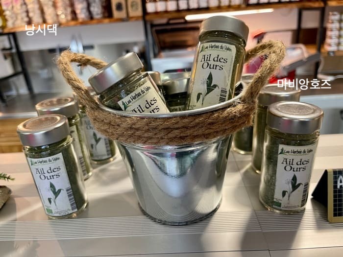 쏨은 명이나물이 담긴 식초를 발견했는데, 보쥬에 명이나물도 꽤 유명한가보다. 명이 소금까지 있네!