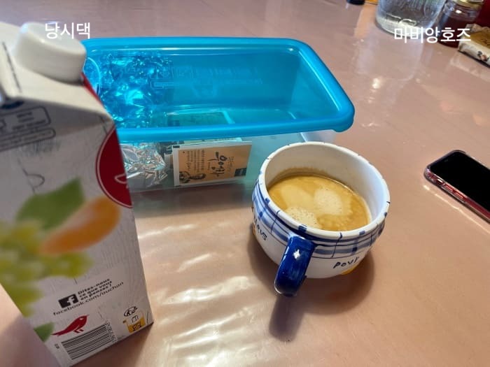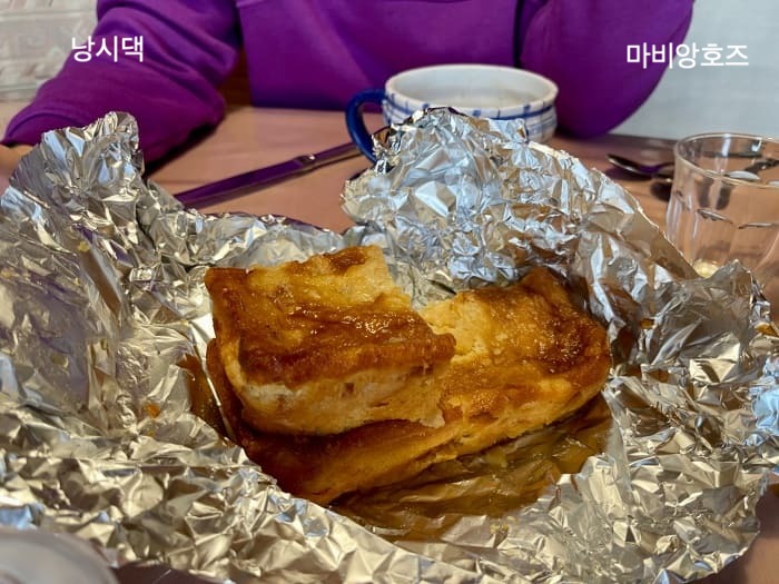 그녀는 아침에 치과 예약이 있어서 혼자 일찍 떠날 예정이었다. 오늘 아침에는 내가 만들어온 사과 갸또가 등장했다.