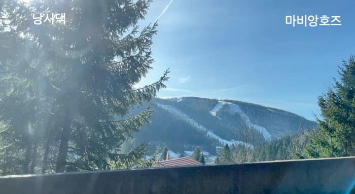 마갈리가 먼저 떠난 후 우리셋은 산위에 있는 리스빠슈 호수 (lispach) 주변을 산책하기로 했다. 스키장 바로 옆이라 스키타는 사람들도 구경할 수 있겠군.