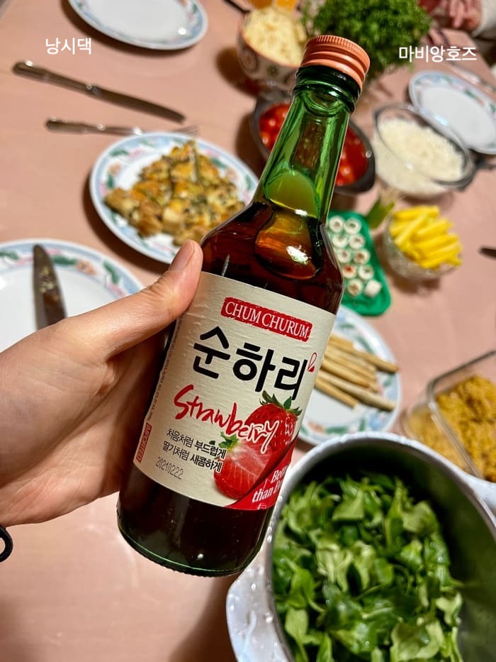 딸기소주가 대체 뭐가 특별한가싶겠지만 이건 병만 시판이고, 속에는 카린이 직접 담은 딸기소주가 담겨 있었던 것이었다!!
