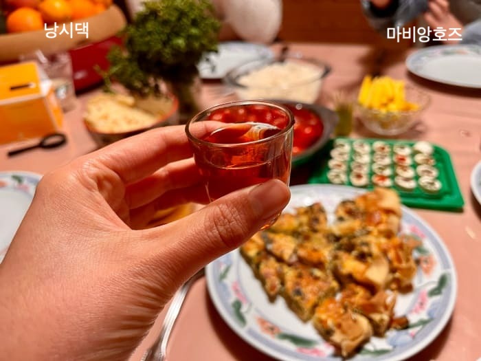 마지막밤이니 한잔씩 따라서 짠을 하고 맛을 보았는데 향이 어찌나 진하던지!!