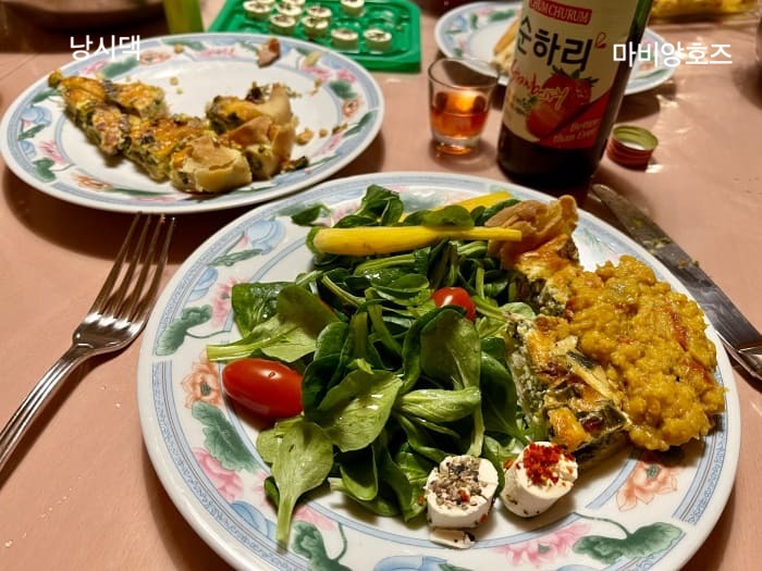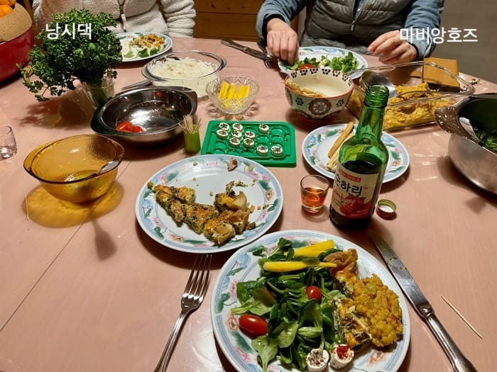 향긋한 딸기소주를 아껴마시며 화기애애한 대화가 오가는 저녁식사였다.