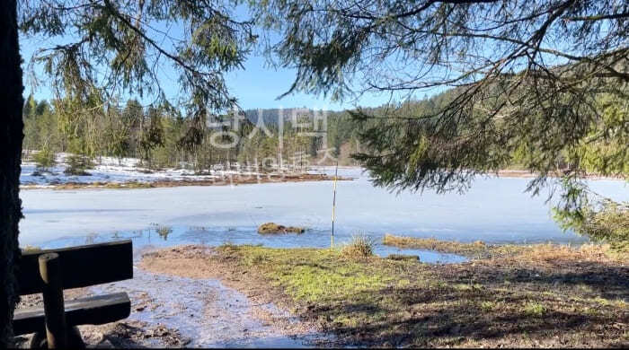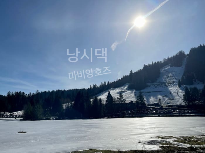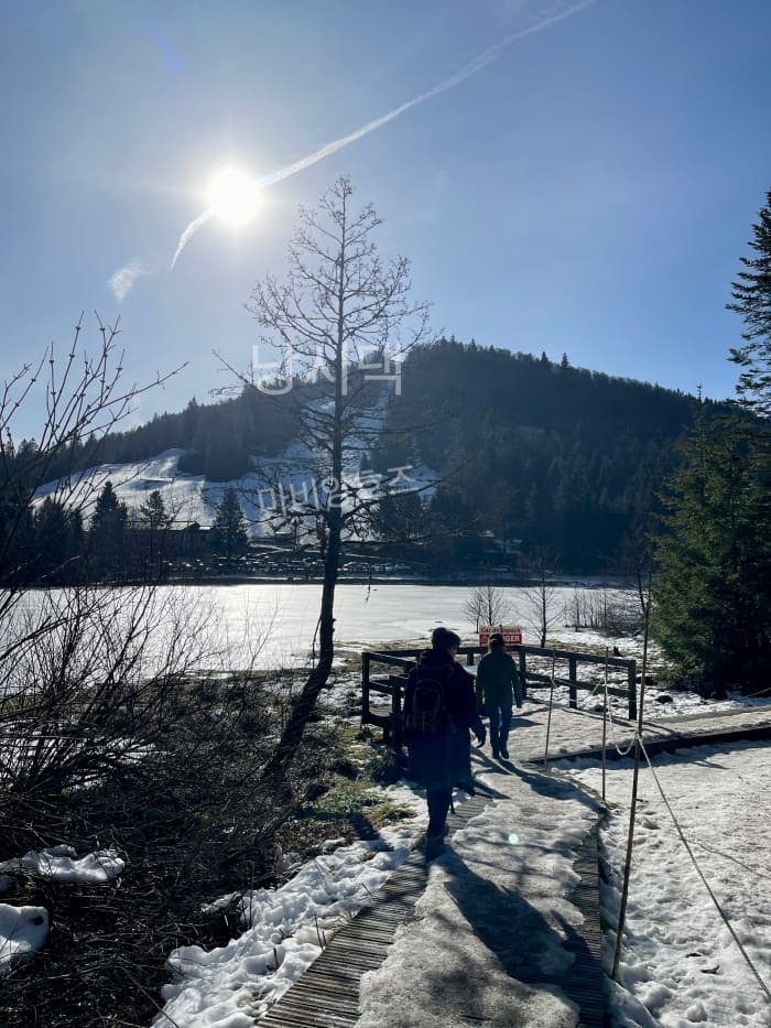 작년 여름에 왔던 바로 그 호수이다. 똑같지만 너무 다른 느낌- 호수가 꽁꽁 얼어있었다.