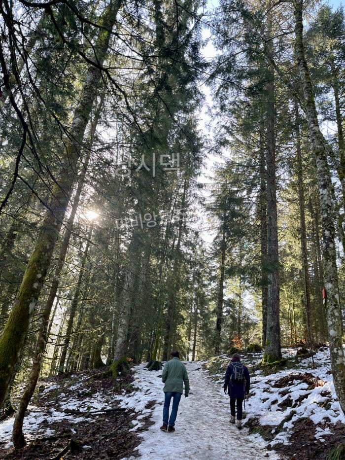 그늘진 곳에는 눈이 꽁꽁 얼어붙어서 미끄러웠다. 등산화를 신고도 아슬아슬 걷고 있는 그녀들 사이에서 나는 키높이 운동화를 신고 잘도 걸어다녔다.