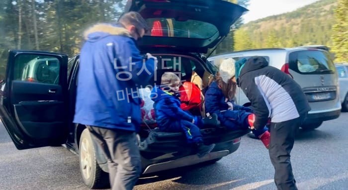 우리가 산위에 도착했을때 수많은 자동차들과 인파가 기다리고 있었다. 이곳에는 아직 눈이 남아있어서 스키나 눈썰매, 하켓등의 다양한 스포츠를 위해 여전히 사람들이 찾고 있는 스팟이었던 것이다.