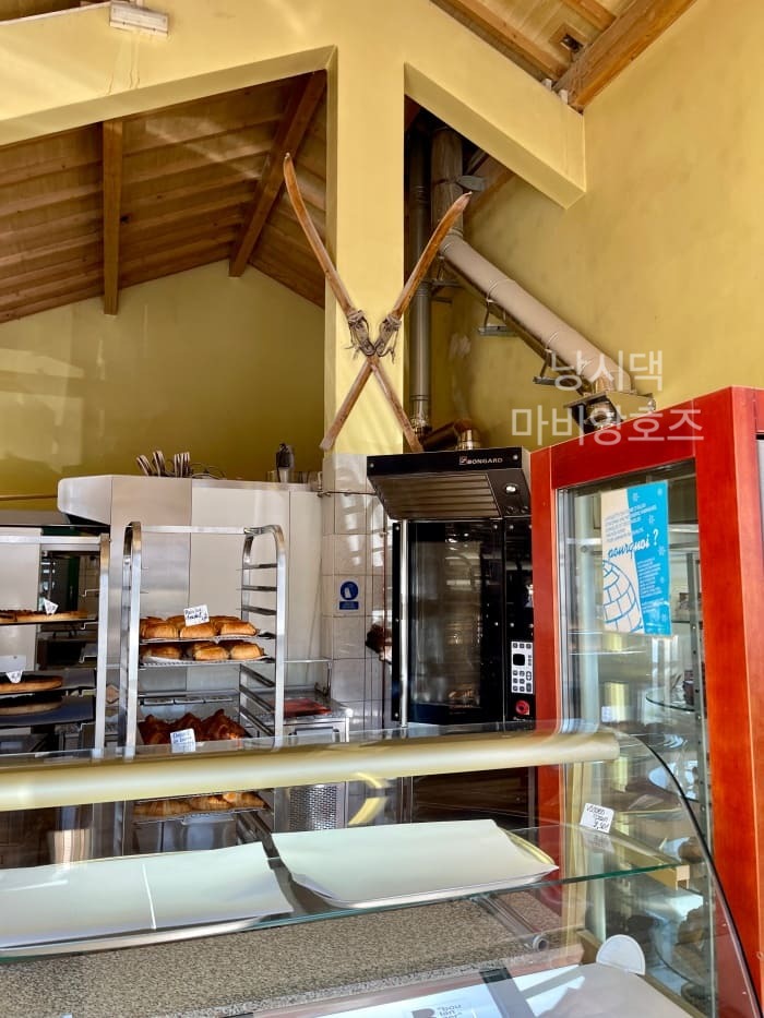 산장에서 본거랑 비슷한 오래된 스키가 벽에 매달려있었다. 역시 보쥬의 상징은 스키인가-