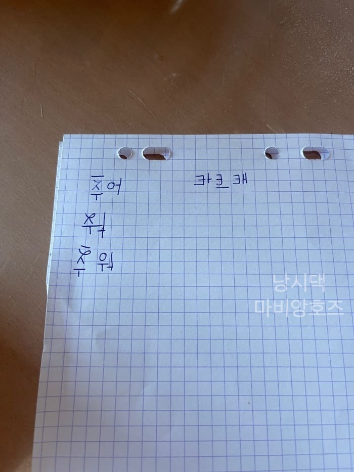 자, 오늘의 퀴즈입니다! 오른쪽에 쓴 세글자는 과연 무엇일까요?